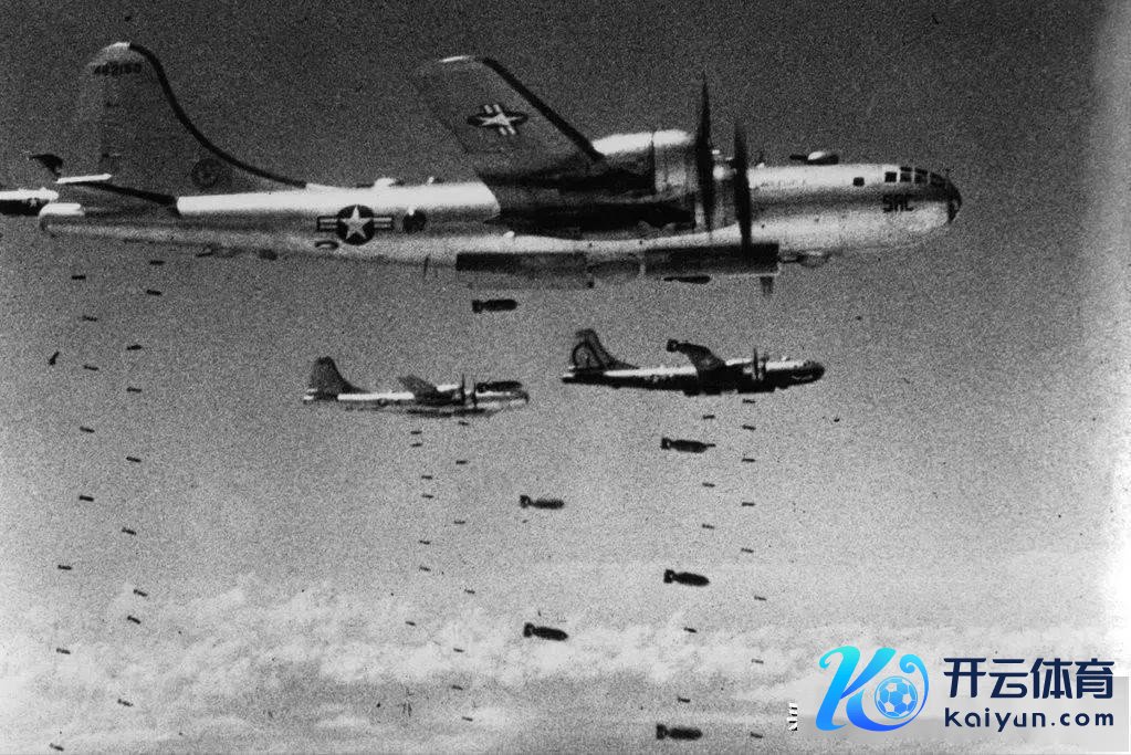图|好意思军轰炸机正在投放炮弹(旧照)
