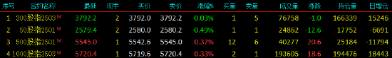 2025年1月16日,股指期货涨跌不一,沪深300股指期货(IF)主力合约跌0.03%,上证50股指期货(IH)主力合约跌0.49%,中证500股指期货(IC)主力合约涨0.37%,中证1000股指期货(IM)主力合约涨0.33%。