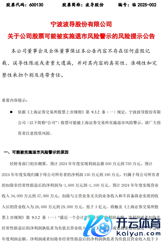 波导股份称,公司股票在2024 年年度讲演浮现后可能被扩充退市风险警示(在公司股票简称前加“*ST”)。