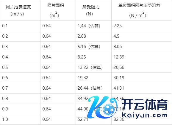 由表二中不错看出网衣拖曳速率(特别于水的流速)与网衣的受力大小呈现近似于平方的关联,因此减少流经网衣的海水速率有意于减少网衣所受到的海水阻力。