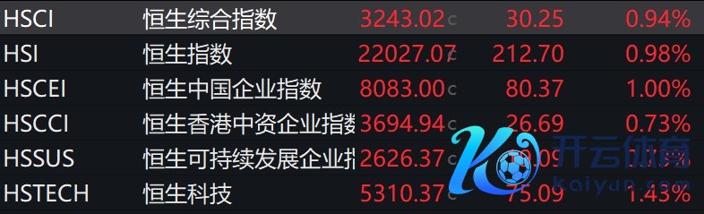 恒生科技指数涨超2%,恒生指数涨1.7%。阿里健康涨近8%,快手涨近5%,哔哩哔哩、京东涨4%。