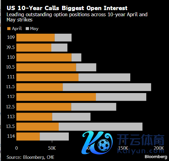 在收益率走低的布景下,来回员们纷繁进行押注,近期十年期期权商场举止激增。然则,大部分来回鸠合在4月和5月的十年期看涨期权上,行权价辩认对准4.15%以及随后的低至3.85%。这一来回举止还扩张到了5年期国债,周二有一笔来回的见识收益率水平为3.35%。