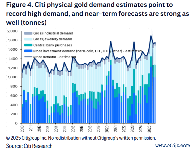从什物商场的角度看,黄金的基本面非常坚实,为高企的价钱提供了有劲相沿。讲演测度,2025年第二季度的黄金需求达到了(或接近)历史最高水平。具体来看,黄金商场的供需失衡体目下以下几点:
